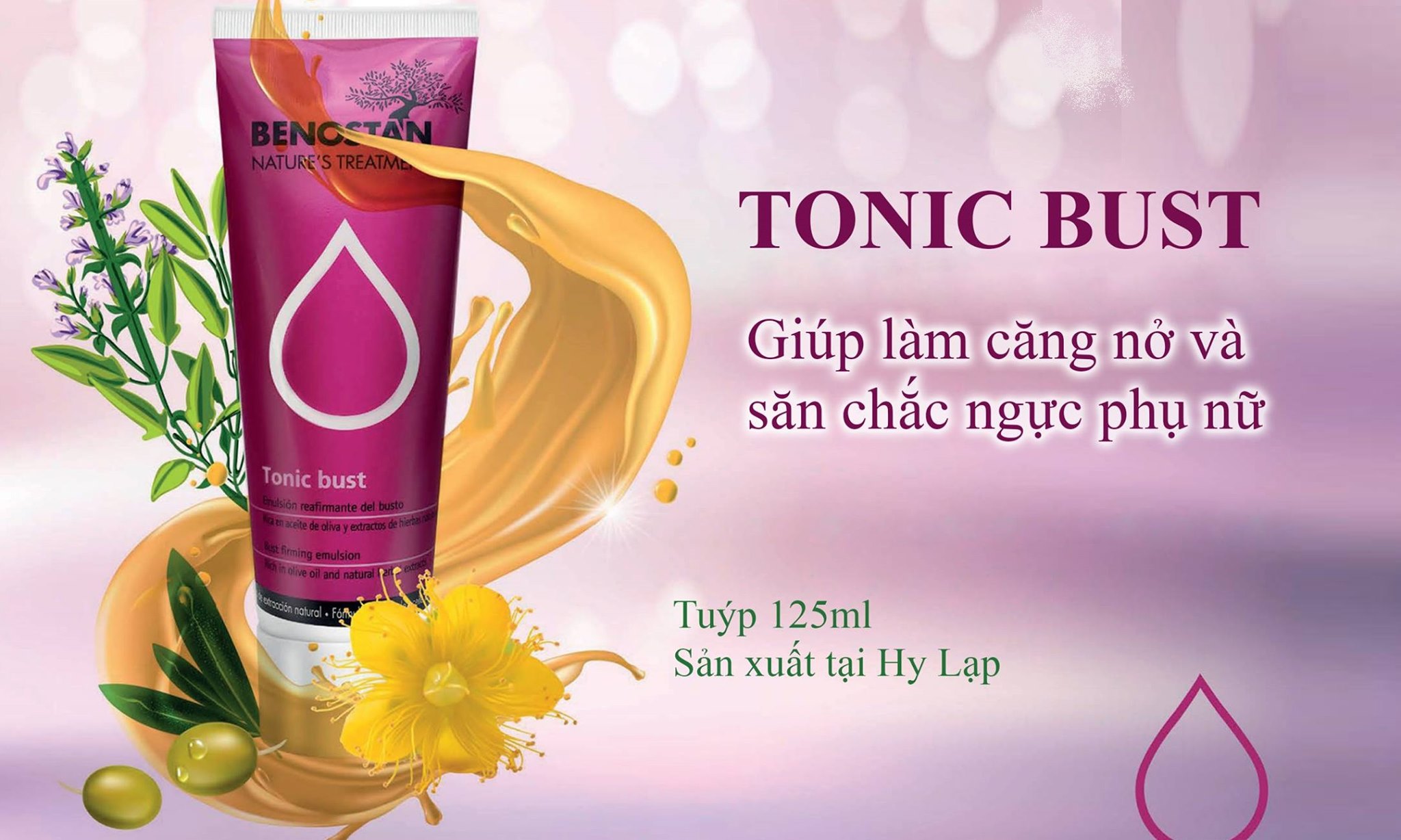 BENOSTAN TONIC BUST với chiết xuất thảo dược và dầu ô liu nguyên chất, giúp làm săn chắc, nở ngực và cải thiện sự giãn cơ, chảy xệ vòng một do mang thai, giảm cân và biến động cơ thể, hoặc mãn kinh…