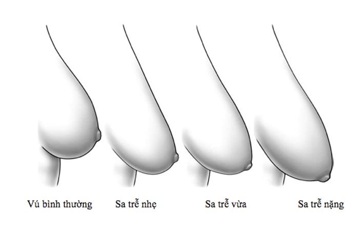 - Mức độ nhẹ: núm vú hạ thấp xuống dưới từ 2-5cm với đường chân ngực