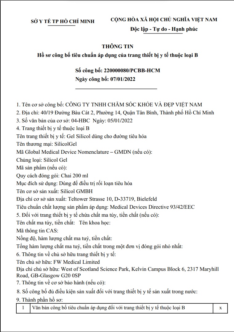 - Tên sản phẩm: SILICOLGEL