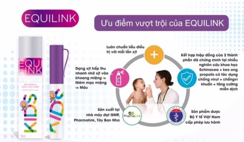 Và hai dược liệu quý trên được kết hợp trong sản phẩm EQUILINK KIDS với dạng bào chế là xịt họng tiện lợi với vị thơm ngọt dịu nhẹ thiên nhiên giúp cho bé dễ dàng sử dụng